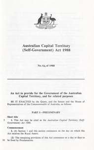 | Long Title: | An Act to Provide for the Government of the Australian Capital Territory, and for related purposes (Act 106 of 1988) |