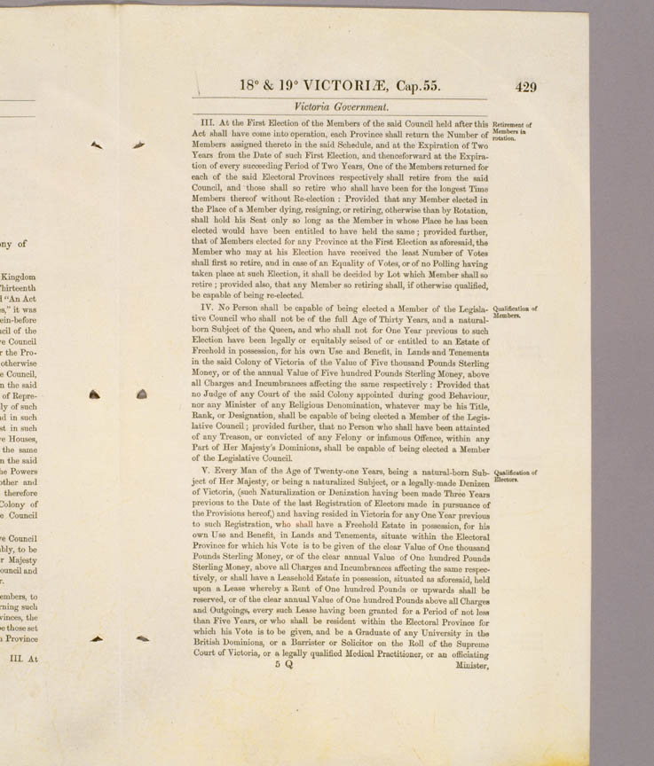 Victoria Constitution Act 1855 (UK), p429